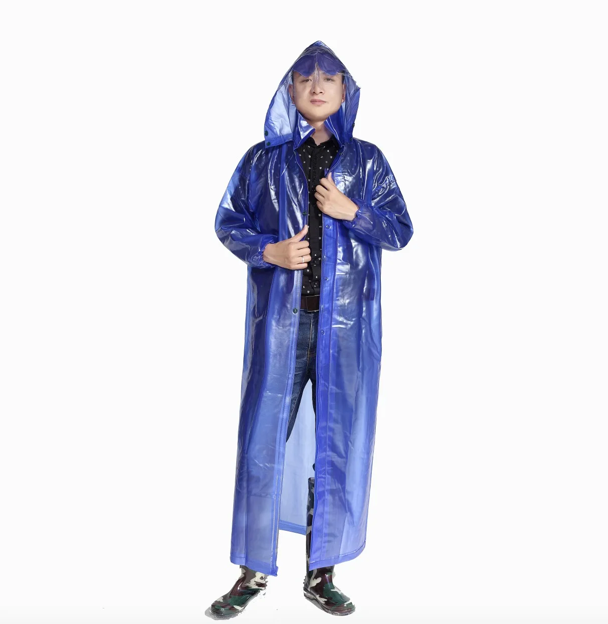 EVA Raincoat Adult women men's waterproof long hooded poncho Outdoor hiking fishing mountaineering raincoat
