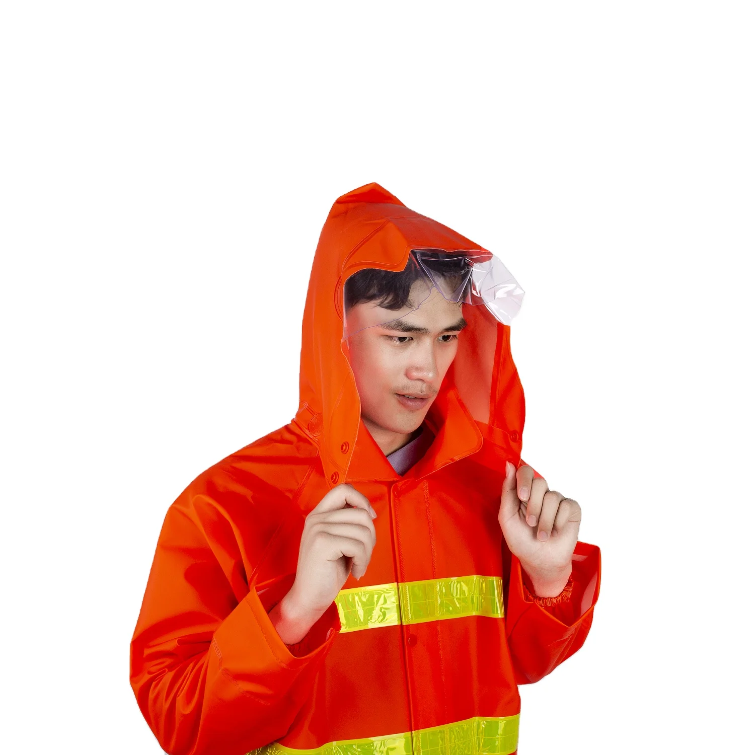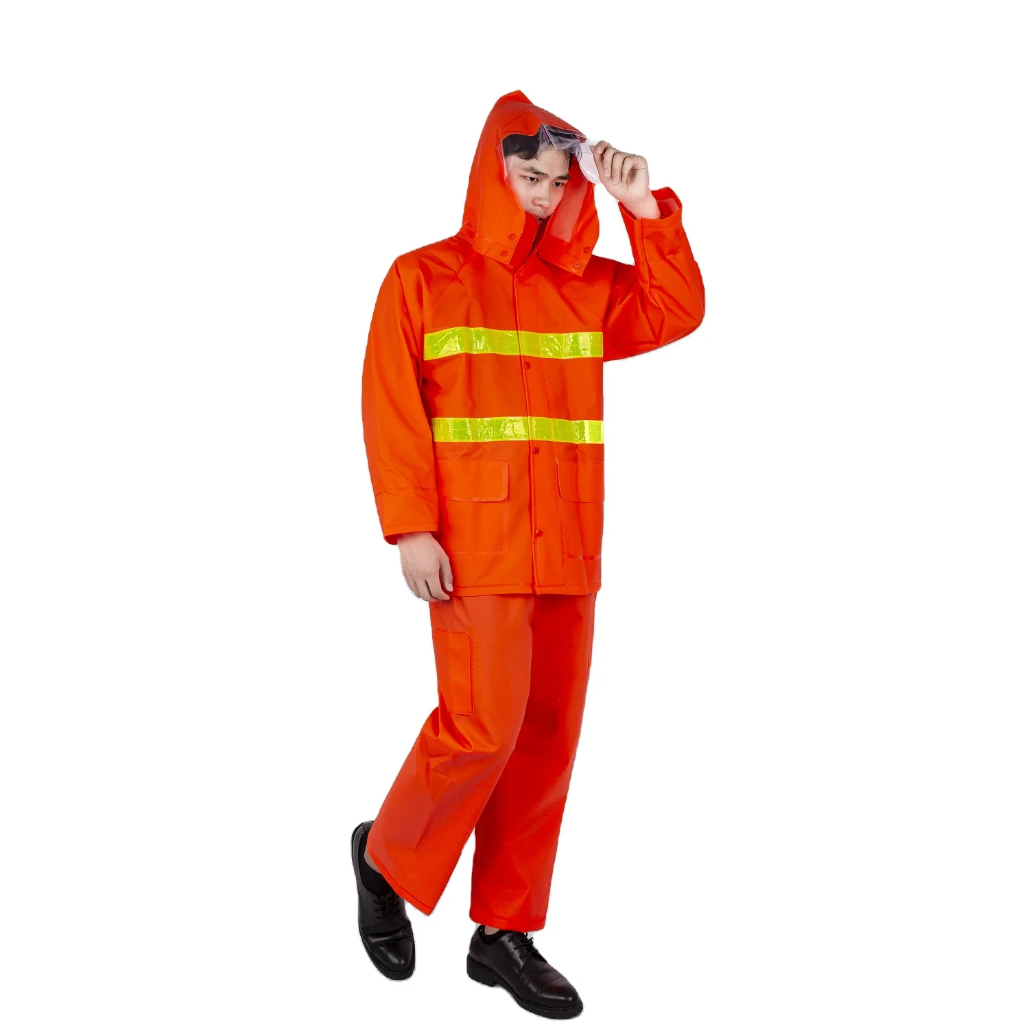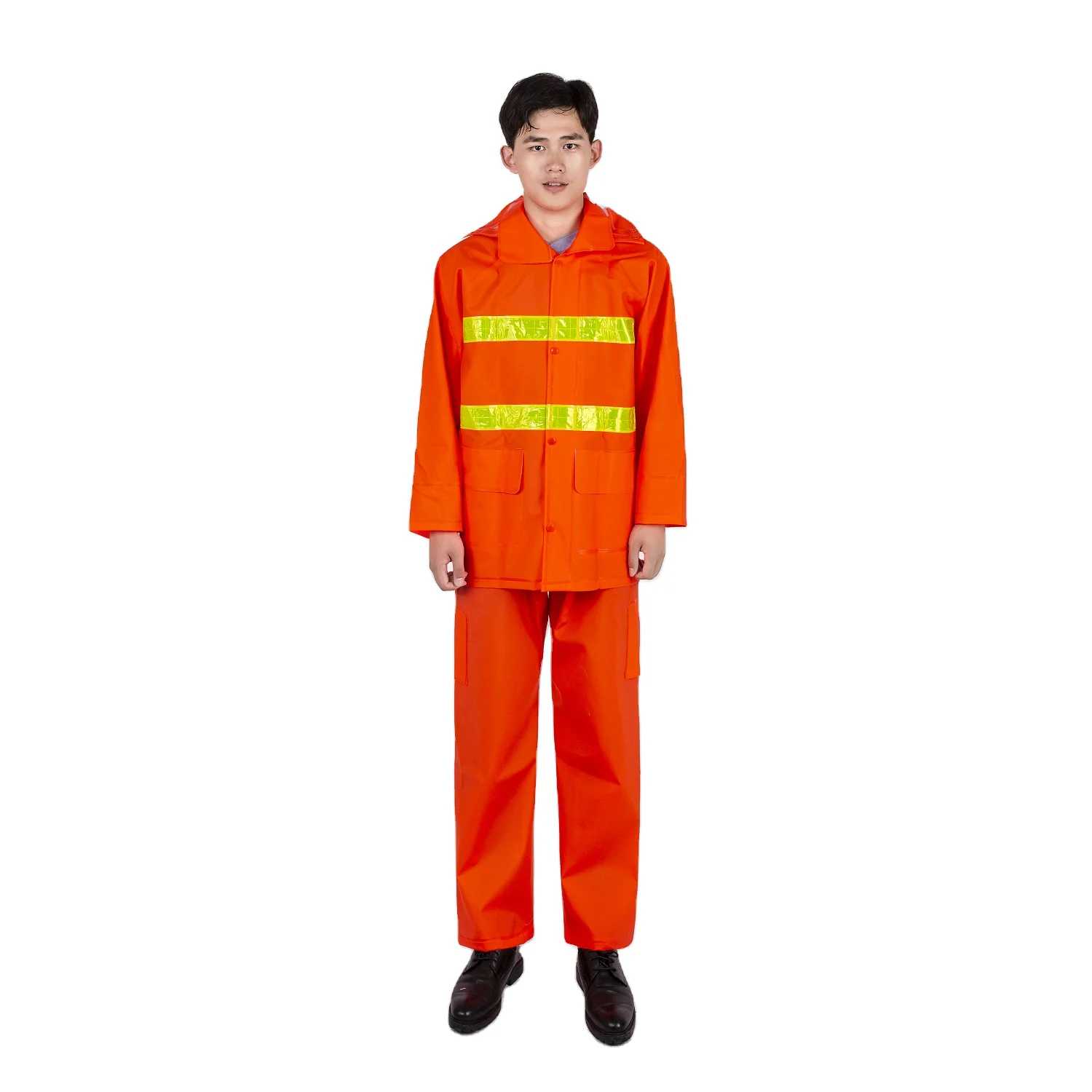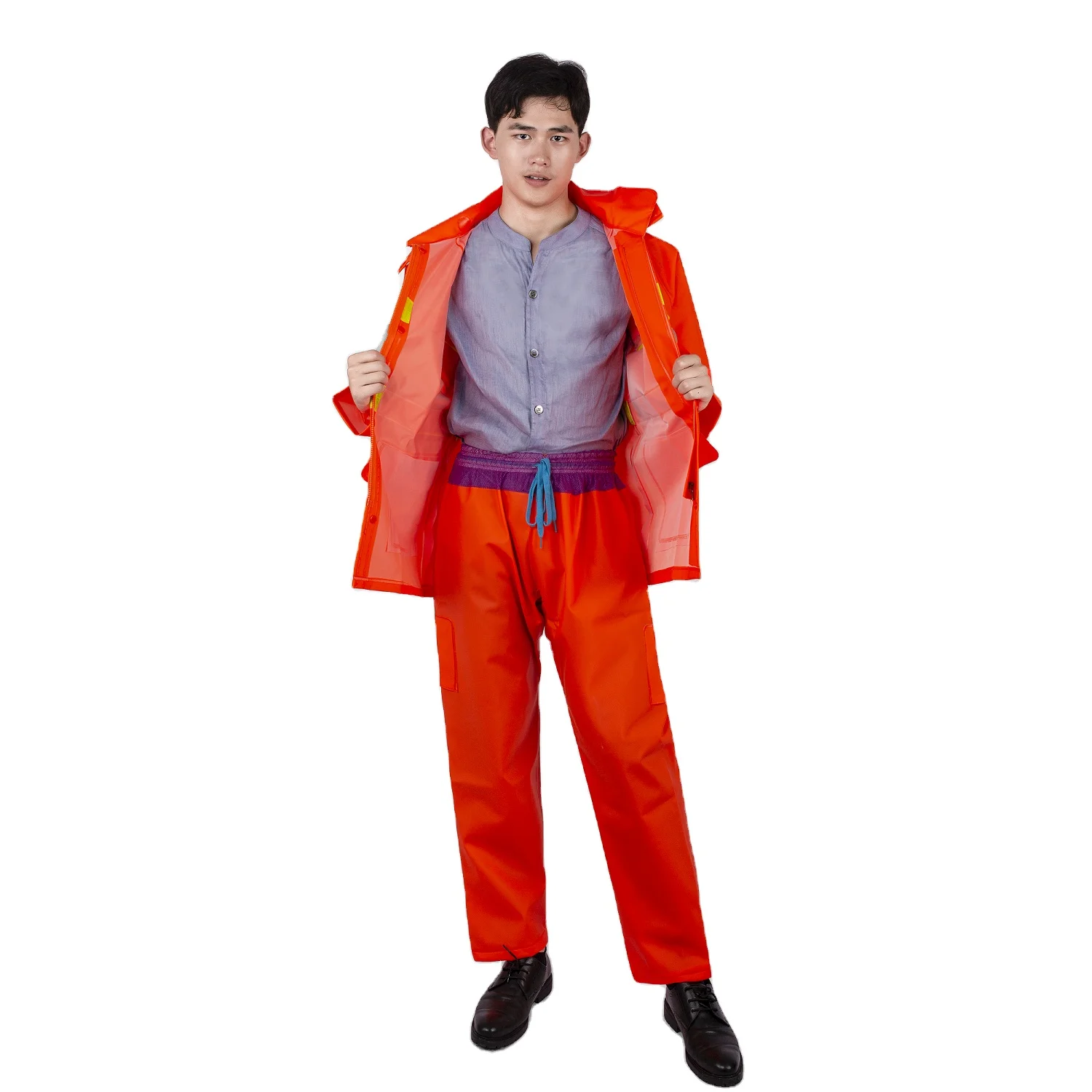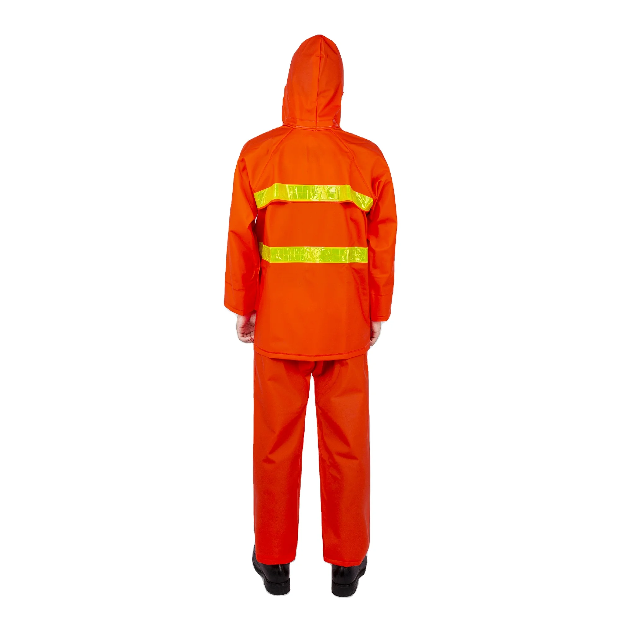 Pvc Orange Breathable Knitted Fabric Construction Raincoat For Environmental Protection Waterproof Reflective Safety Raincoat